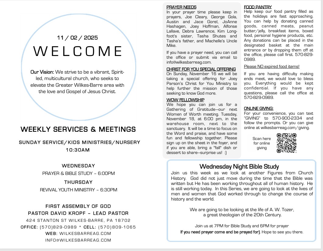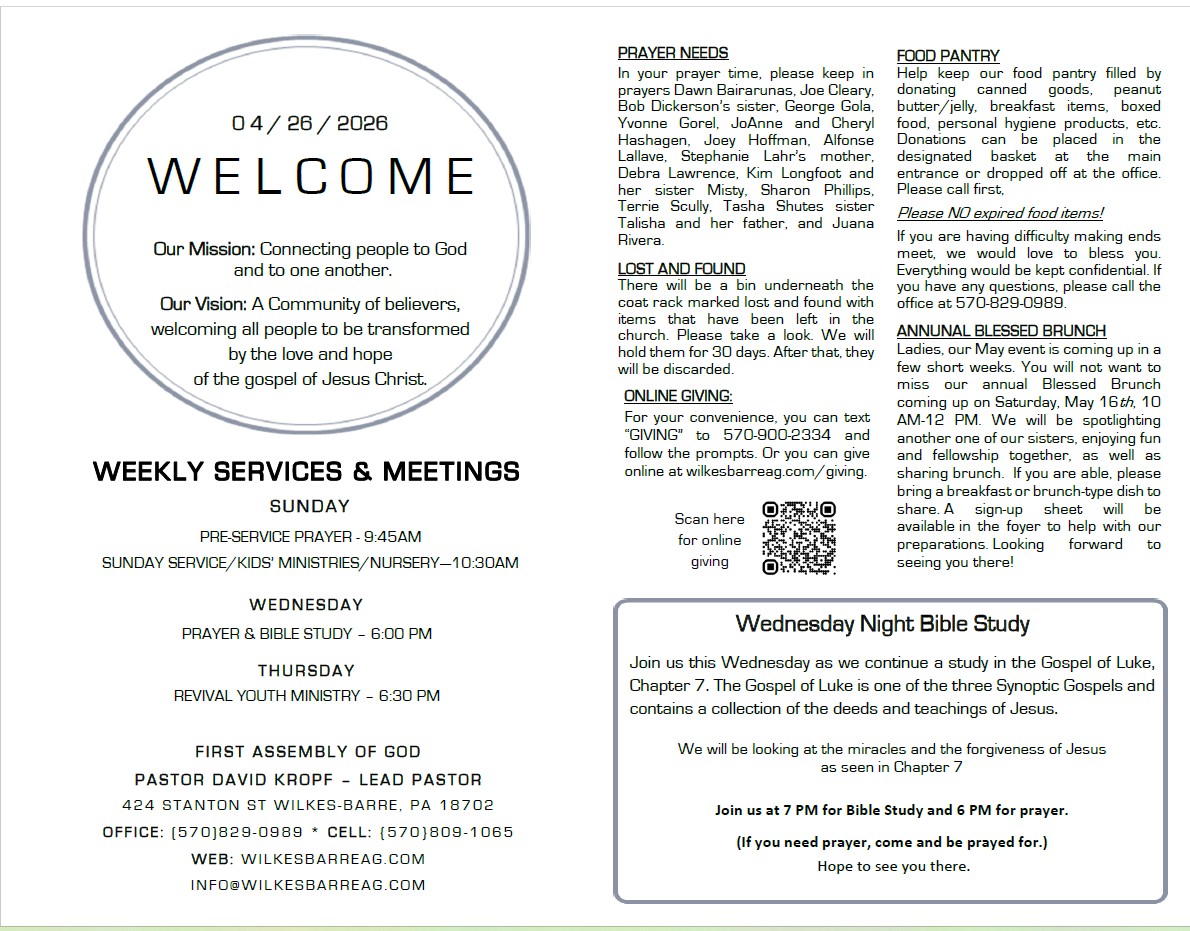 Thank you for visiting First Assembly of God! Whether you are a believer, are still exploring your faith, or are just browsing our site, we want to make this website as beneficial to you as possible. If you have any questions, concerns, or comments, please feel free to contact us!